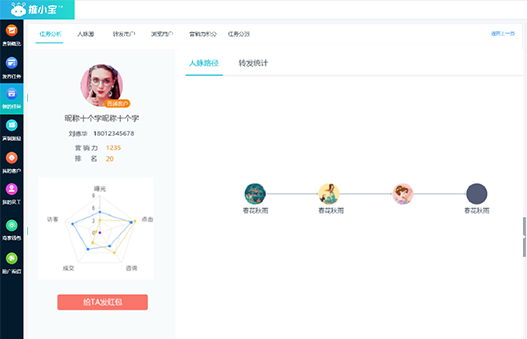 人脈關系:獲得哪一個層級的人最多,何時是傳播高峰;誰傳播